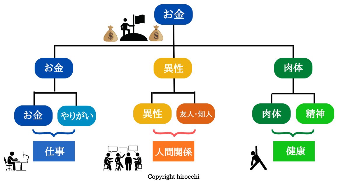 - 人の幸せは何を充実すれば手に入れる事ができるか?