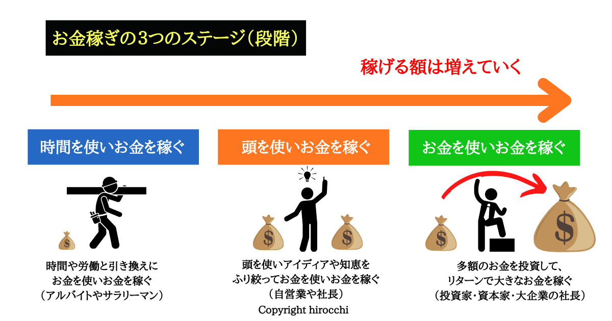 - 頭を使い稼ぐステージからお金を使い稼ぐステージ
